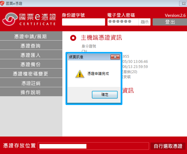 憑證申請完成(檔案預設存放於桌面)