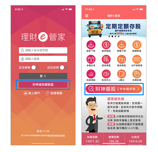 ● 財神選股體驗區:提供非國票客戶體驗使用,歡迎線上開戶。