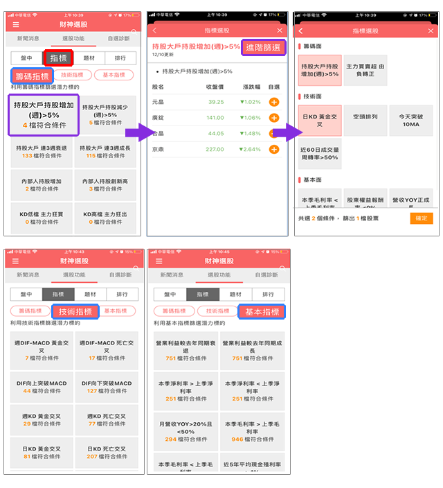 (2)指標選股:提供籌碼指標、技術指標、基本指標。