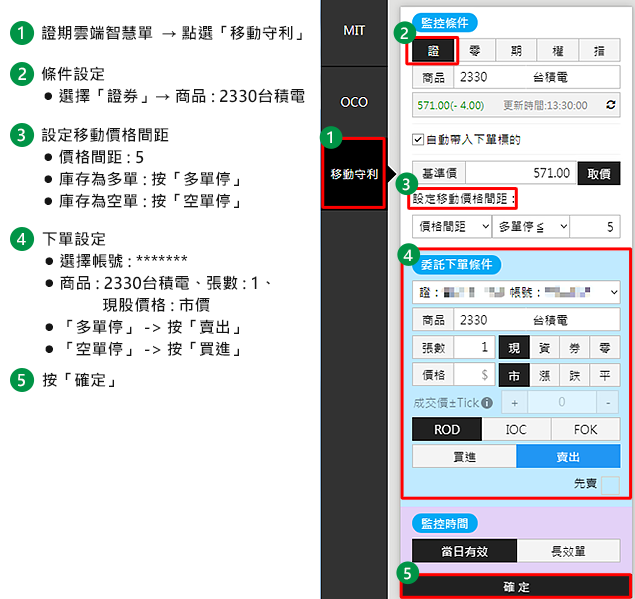 | 賣出移動守利委託 | 買進移動守利委託 | |
