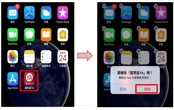 iPhone如何將國票超業 APP程式移除?