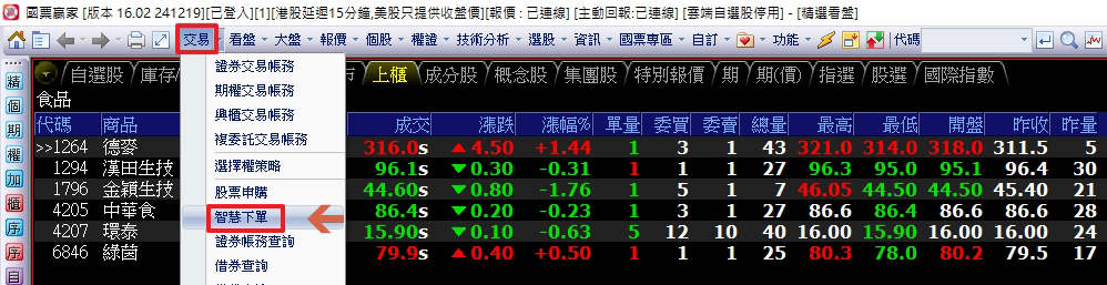 開啟「智慧下單」介面