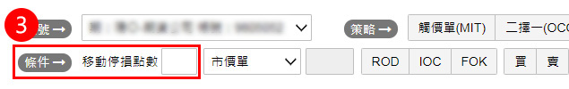 下單步驟3:設定移動停損點數